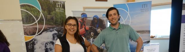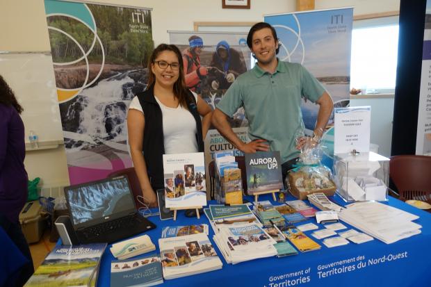 ITI Representatives Desiree Bagnall, Tourism Resource and Programs Coordinator and Max Rossouw, Tourism Officer, North Slave Region get ready to chat with youth about careers in tourism. Photo: Douglas Dillon.