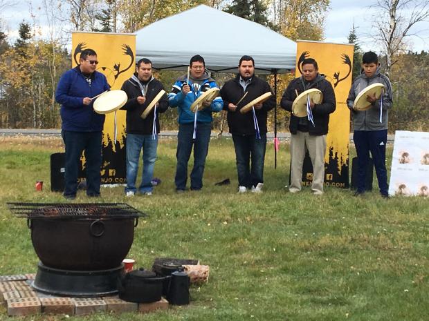 Les joueurs de tambour de la Première nation des Dénés Yellowknives ont lancé les festivités en chantant une prière..