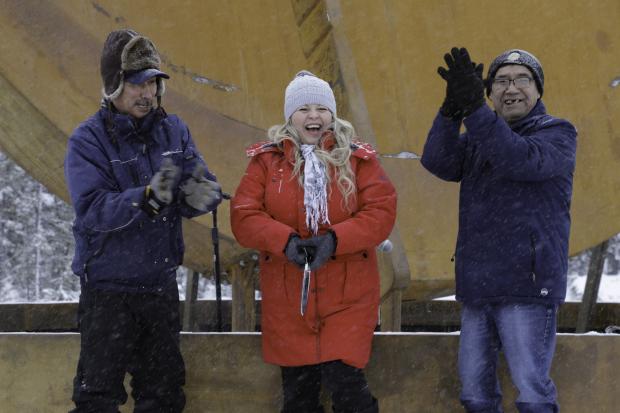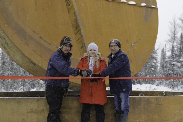 « Le tambour est sacré pour les Dénés. Il est tenu et joué en l’honneur de ceux qui sont décédés, ou dans les célébrations. Aujourd’hui, nous participons à l’inauguration officielle de cet incroyable monument », a déclaré la directrice régionale du MITI, Marty Ann Bayha, au nom de la ministre Caroline Wawzonek.