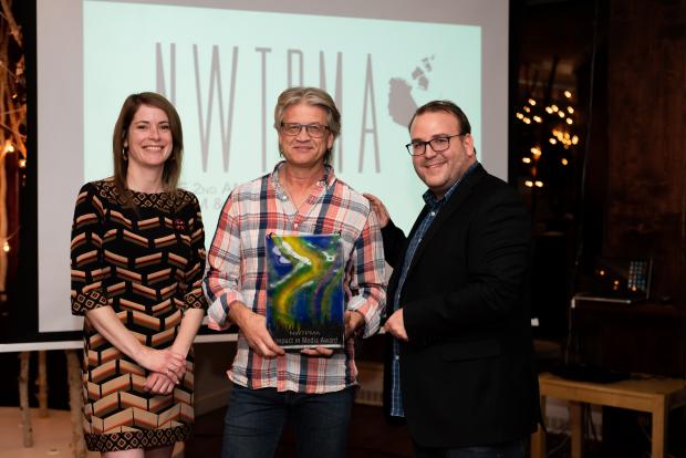 Jean-Francois Pitre lors du gala de remise des prix, en compagnie de la ministre Nokleby et de Scott Clouthier