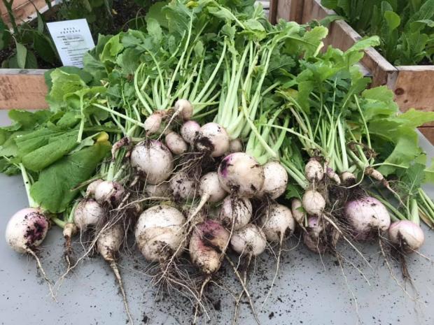 Ensemble, Mme Noland et ses collègues ont appris les rudiments de la science des sols, de la transplantation des plants, des espacements et plus encore. Les formations qu’ils ont suivies et le travail acharné qu’ils ont accompli leur ont permis de récolter plus de 450 livres de fruits et de légumes frais cette saison, la majorité étant des légumes verts et des fines herbes.