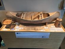 Un ulu en cuivre avec poignée en os de caribou, des lunettes de neige, un nœud papillon en peau de phoque, une poupée dénée décorée et un canot d’écorce magnifiquement détaillé ne sont que quelques-unes des œuvres remarquables d’une nouvelle série de vitrines artistiques installées à l’Assemblée législative des Territoires du Nord-Ouest (TNO).