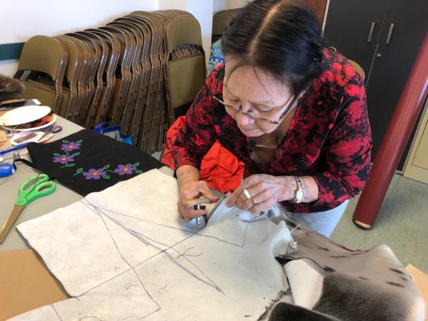 Le réputé designer autochtone D’Arcy Moses a aussi enseigné aux artisans locaux des techniques de couture adaptées à la peau de phoque. Comme les habitants du Nord le savent bien, rien n’est plus chaud qu’une paire de mitaines en peau de phoque! Moses est reconnu pour son style et sa capacité à stimuler la demande envers des produits autochtones d’allure moderne et de grande qualité. Le ministère de l’Industrie, du Tourisme et de l’Investissement (MITI) est fier de s’associer à la Yellowknife Inuit Association pour commanditer ces activités. La viande de phoque est fournie par un distributeur local qui répond aux normes de l’Agence canadienne d’inspection des aliments. Tous les matériaux pour l’atelier de couture ont été fournis par le bureau de la Diversification économique du MITI.Vous aimeriez acheter une peau de phoque? Découvrez le programme Fourrures authentiques de la vallée du Mackenzie et voyez comment il profite aux chasseurs qui utilisent des techniques traditionnelles.