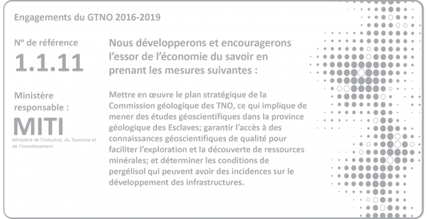 Le ministère de l’Industrie, du Tourisme et de l’Investissement (MITI) a conclu un partenariat avec la Société de formation aux métiers des mines, le Collège Aurora et des membres de l’industrie minière locale pour répondre à la demande en matière de travailleurs compétents dans le domaine géoscientifique.