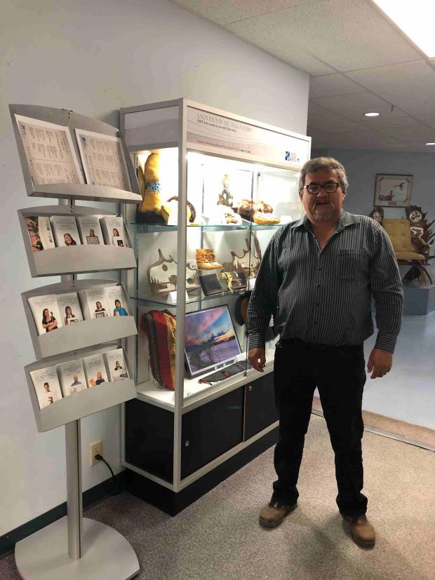 La nouvelle vitrine de Fort Resolution est installée dans le complexe de bureaux et présente des travaux d’artistes inscrits au programme Arts TNO qui habitent le hameau.