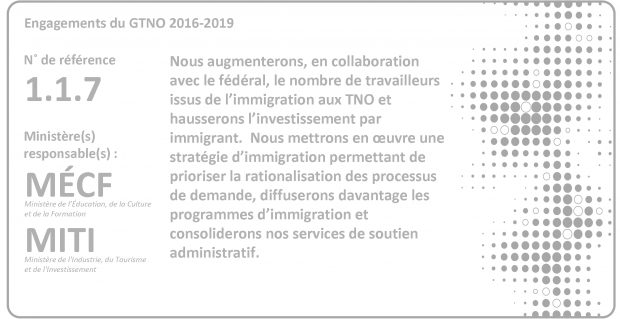 Pour obtenir des renseignements supplémentaires sur le Programme des candidats des TNO, consulter le www.immigratenwt.ca. La version française du site Web Immigration TNO sera bientôt disponible. Dans l’intervalle, téléphonez au 1-855-440-5450 ou écrivez à immigration@gov.nt.ca pour obtenir de l’information.