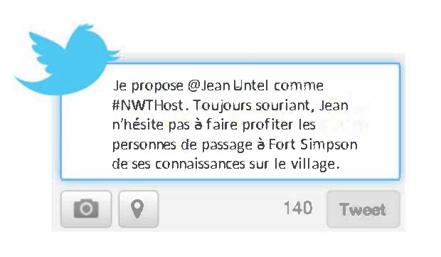 Trouvez quelqu’un aux Territoires du Nord-Ouest qui sait vraiment recevoir. Cette personne est-elle gentille et prévenante envers les touristes? Donne-t-elle des directions ou des conseils sur ce qu’il y a de plus intéressant à explorer dans sa collectivité?