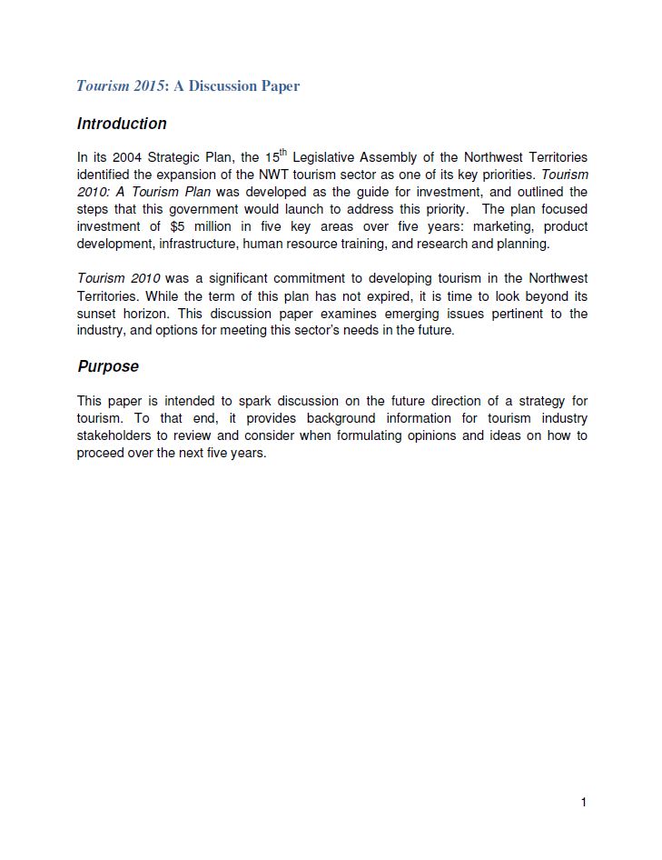 In 2009/2010, the Department of Industry, Tourism and Investment (ITI) contracted NorthWays Consulting to carry out consultation with Aboriginal organizations, the tourism industry, and interested stakeholders to discuss the benefits of, and barriers to, Aboriginal tourism and to plan an Aboriginal Leadership Forum.