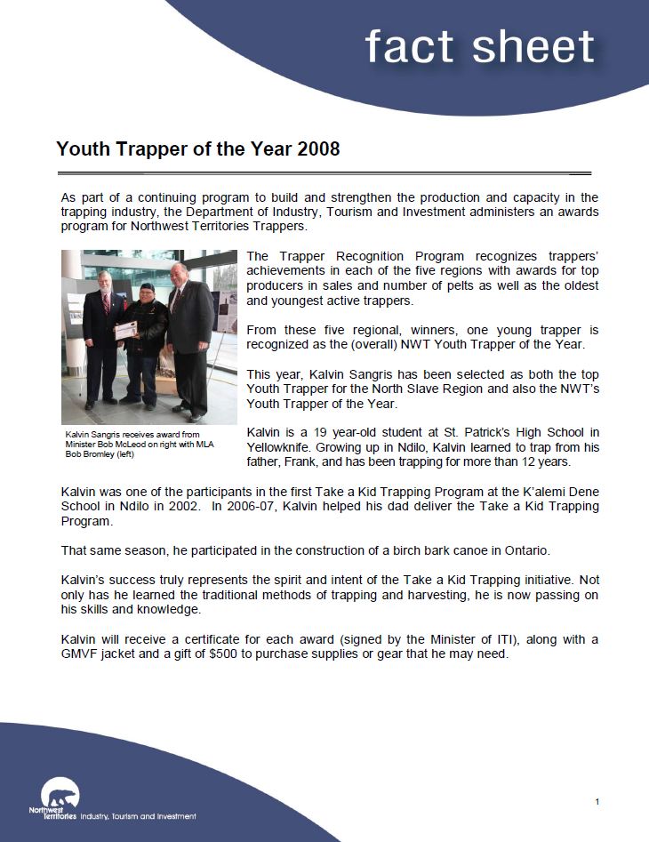 A seasonal newsletter on the trapping community in the NWT.